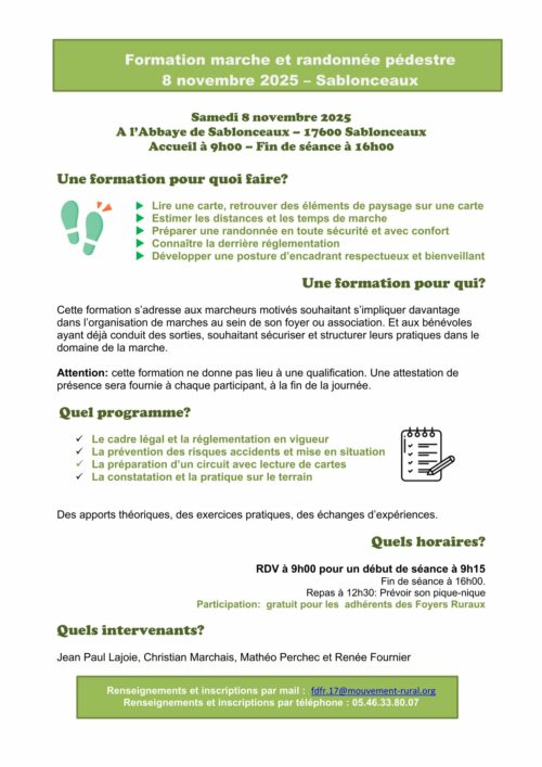 9 h 15 min - 16 h 00 min Formation marche et randonée novembre 8 | 9 h 15 min - 16 h 00 min Formation marche et randonée Affiche Formation randonnée pédestre